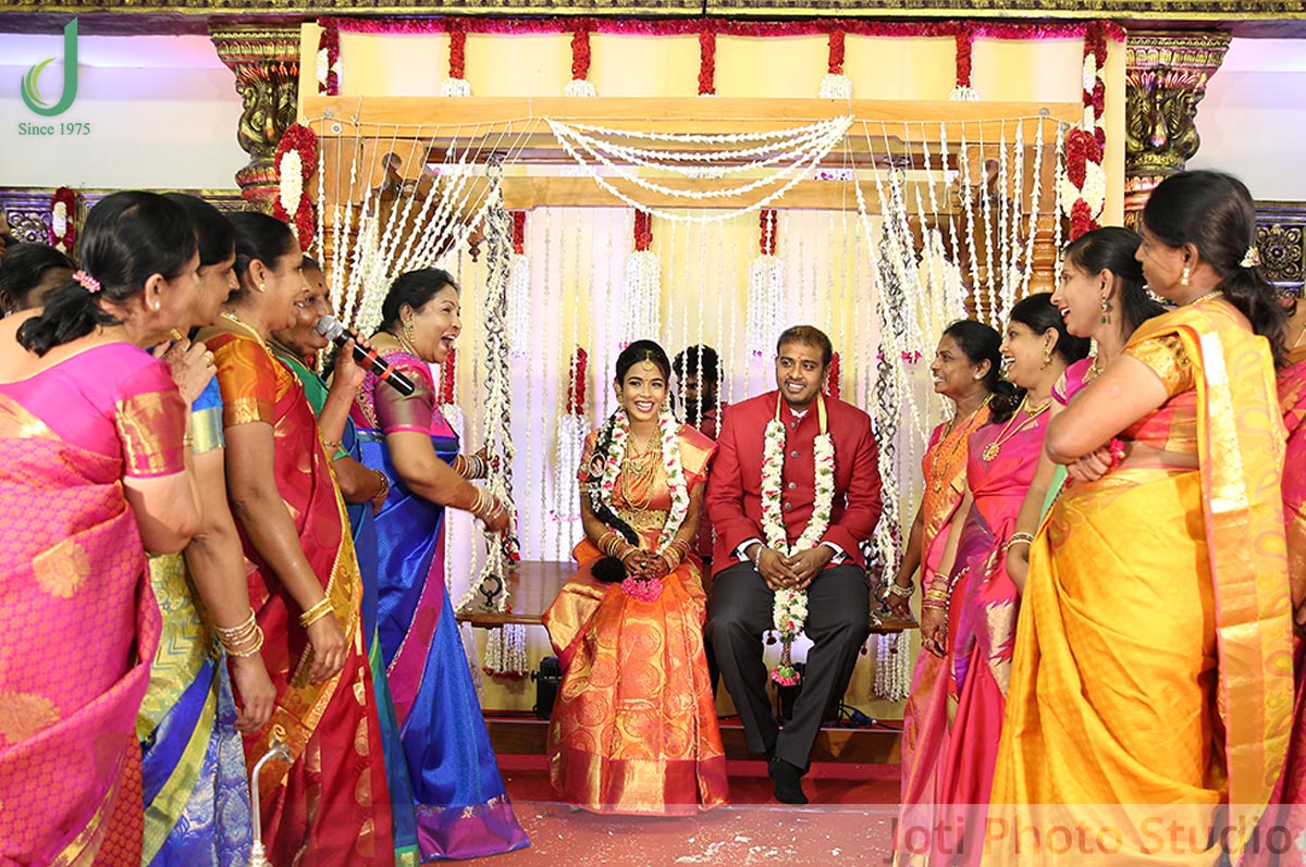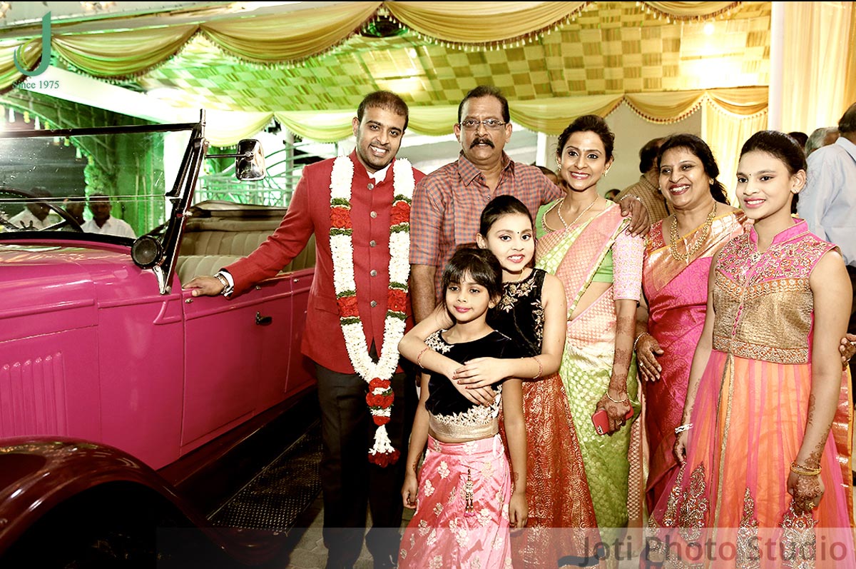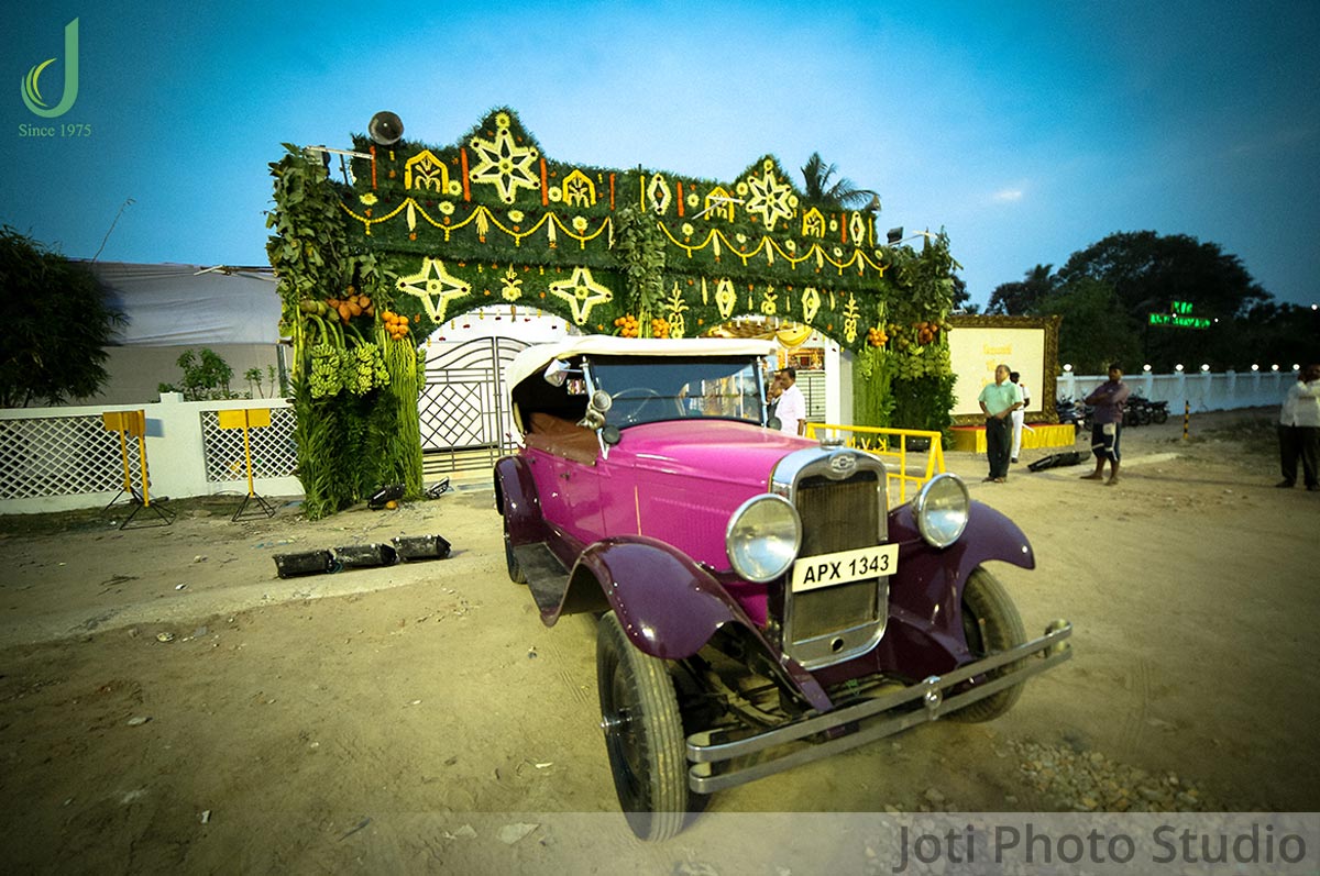 Ashwanth looked stunning in his red attire and was all set to take a drive on the pink vintage car. After the exciting drive the groom was welcomed by the bride who was equally looking gorgeous. The dazzling couple were then made to sit on a swing following which there was a lot of fun and entertainment in the mandap.